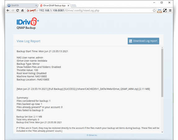 1. Backup: Enables you to backup data from the QNAP device to your IDrive account.