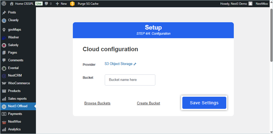 3. In the WordPress dashboard, go to Next3 Offload > Setup.